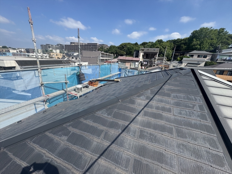 今回は7月後半に行ったカバールーフ工事です。懇意にしている塗装業者様からのご依頼で横浜市まで伺いました。