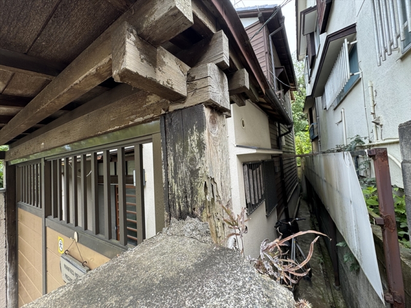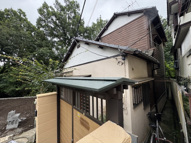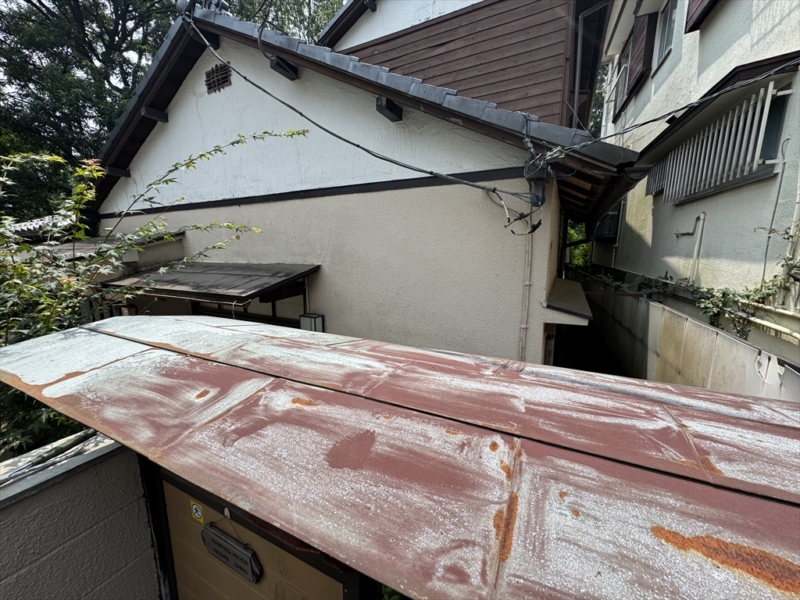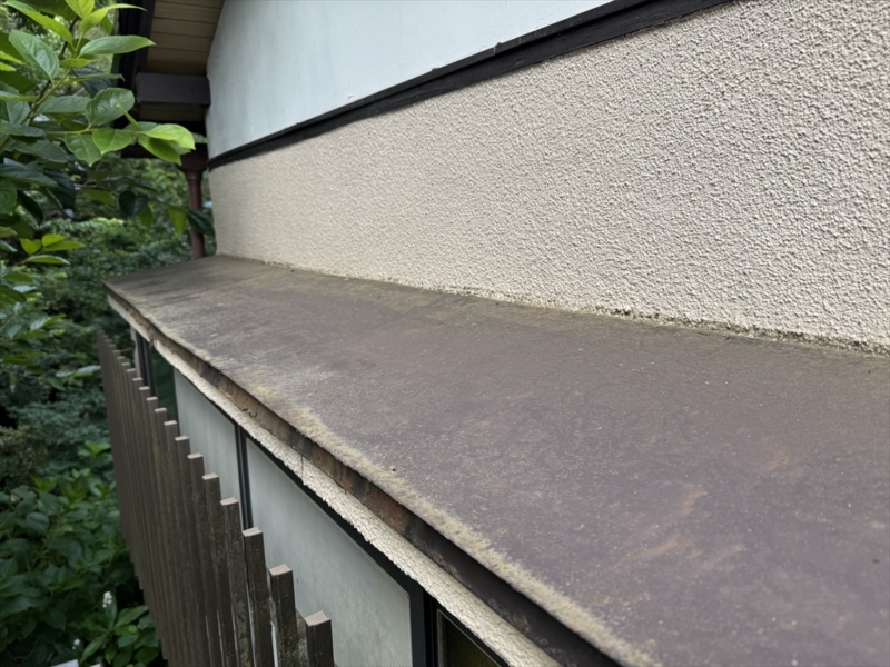 施主様のご要望は築年数と賃貸物件ということを考えて借主に不便を感じさせることがない程度で費用は抑えたいとのご要望でした。築年数からも全体的に手をかけたほうが良い部分は多いのですが先ずは最低限直しておくべき範囲にとどめてご提案をさせていただき庇のカバーを行いました。