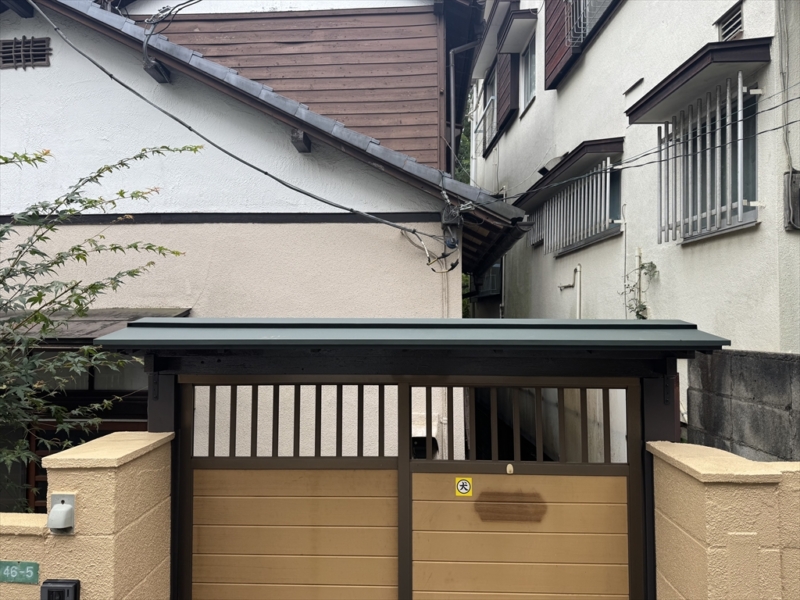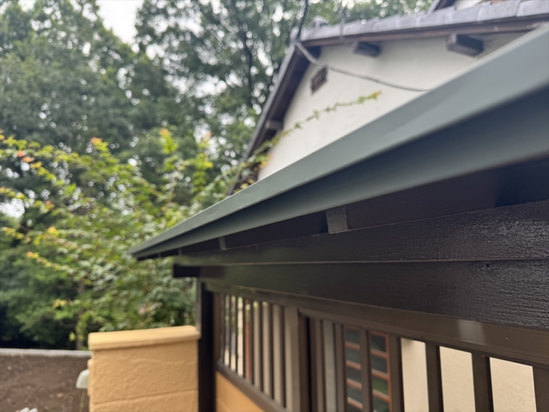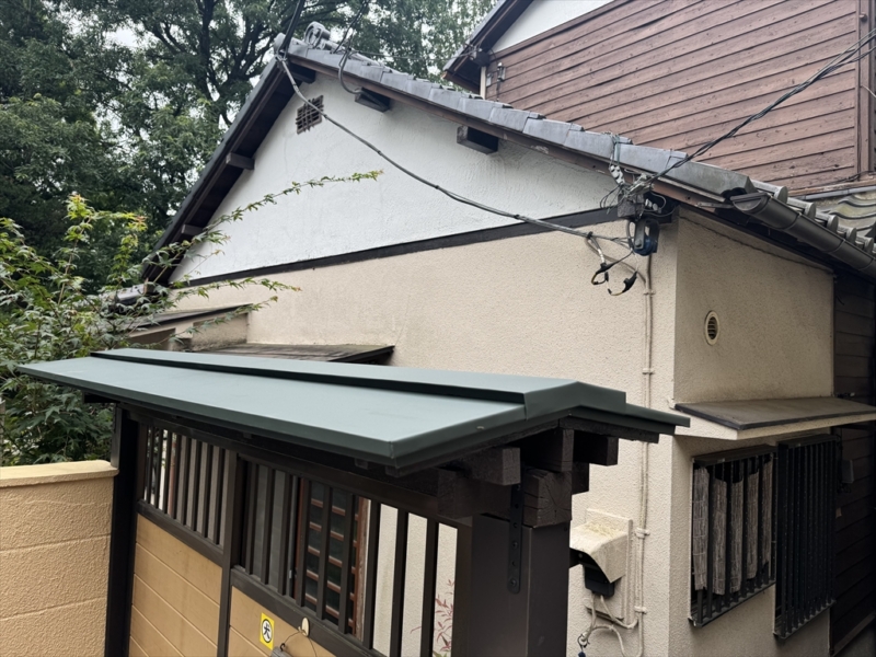 さて今回は小さな工事のご紹介です。庇の板金カバーと門扉笠木(屋根)の板金工事を練馬区関町北で行いました。