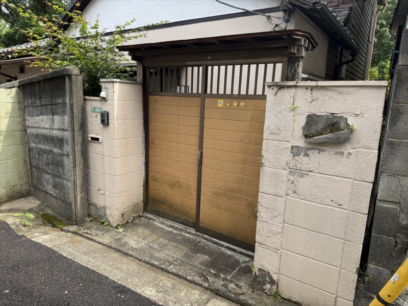 庇が綺麗になったところで施主様から玄関前の門扉・門塀を綺麗にしたいとの追加のご依頼をいただきましたのでこちらも着手していきます。