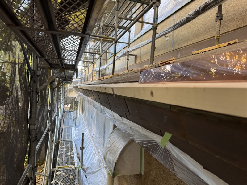 大屋根部分の寄棟四方の軒先をぐるっと仕上げて、