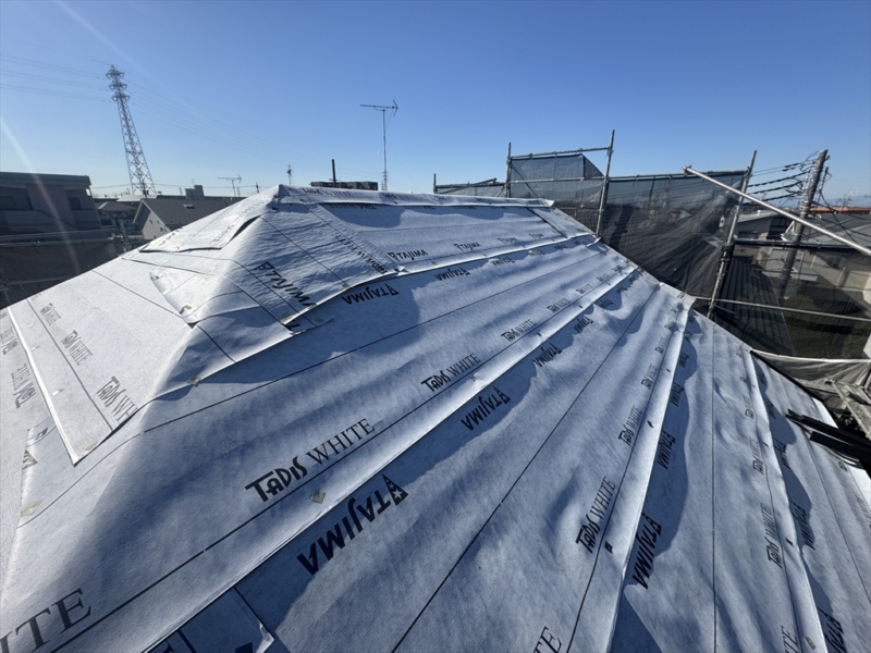 最初にルーフィングを敷き詰めて、