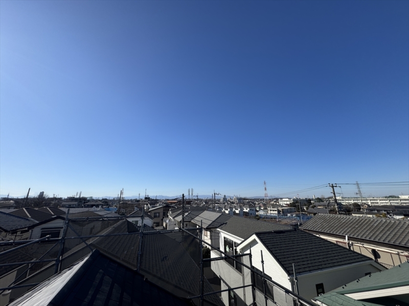 最後に屋根の上から冬晴れの秩父方面をパチリと。